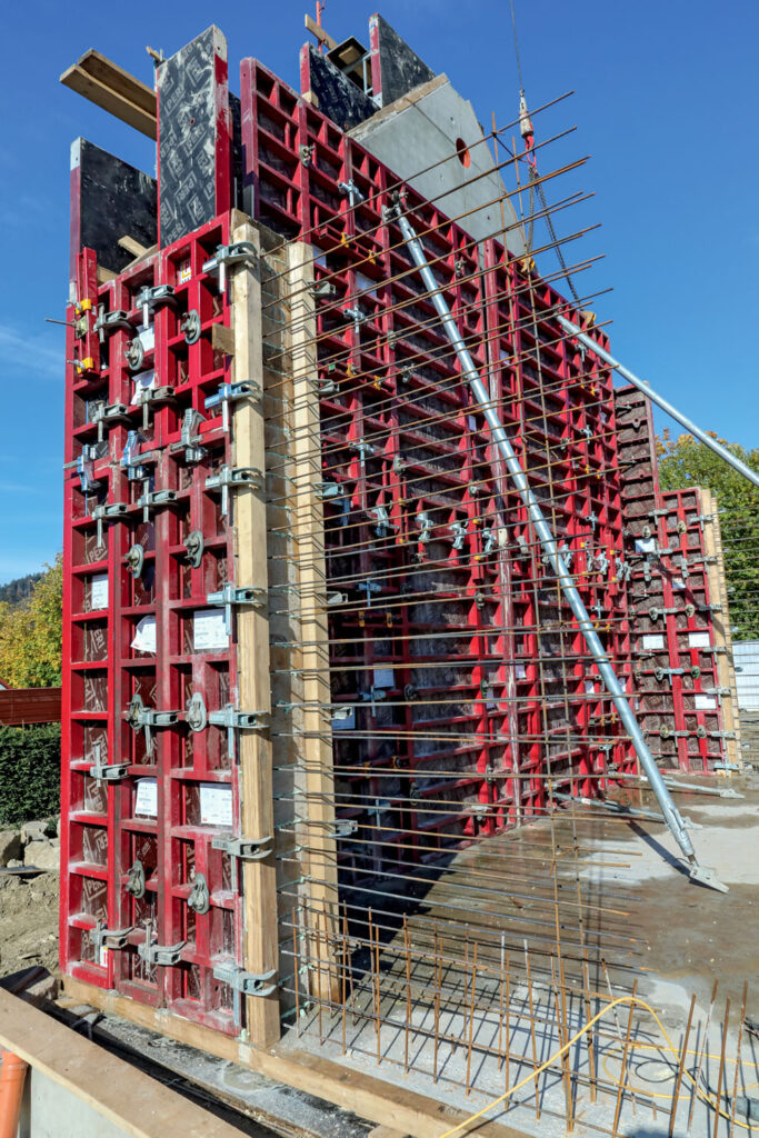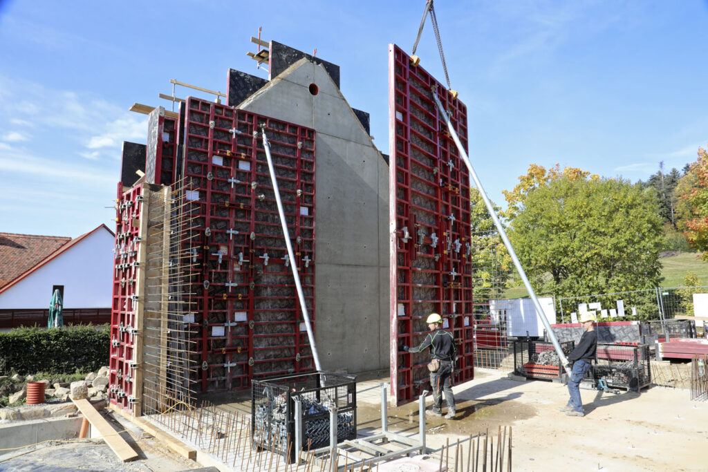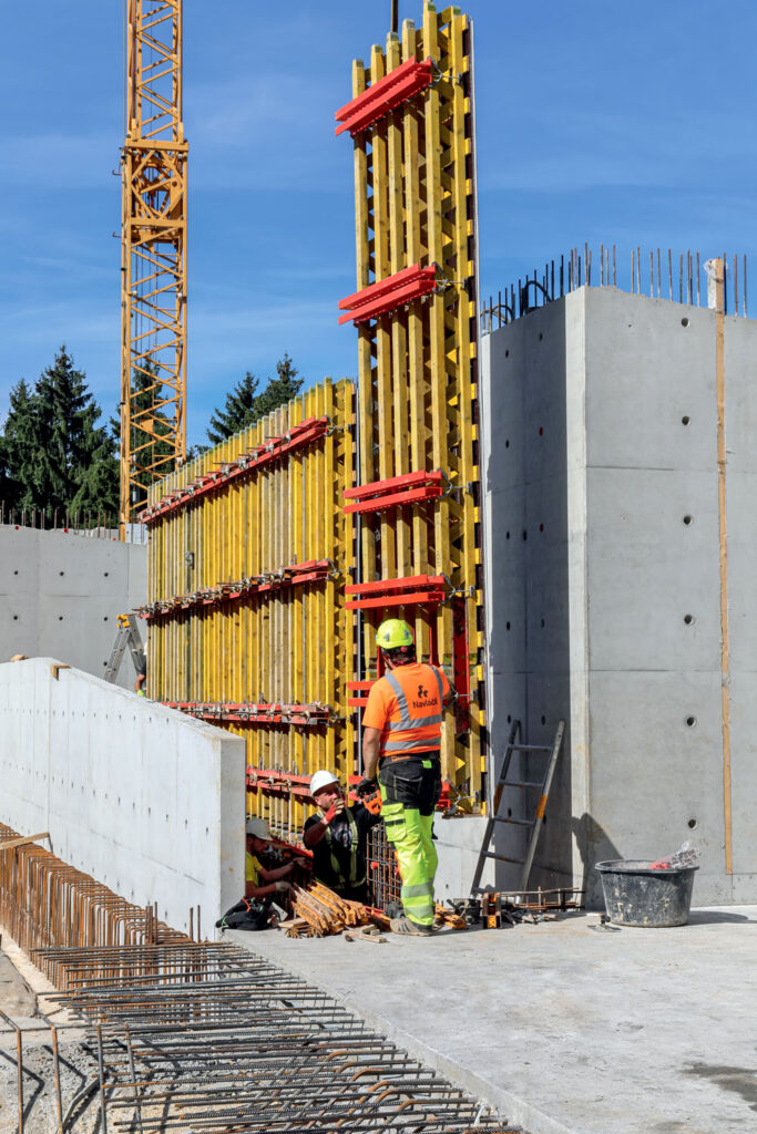 Hlavní výzvou tohoto projektu bylo zhotovení štítové železobetonové stěny sousedního objektu v pohledové kvalitě s uspořádaným modulem spár a spínání. Na tuto stěnu bylo zvoleno rámové bednění MAXIMO, které disponuje panely s výškou 3,00 m a 3,60 m a umožňovalo betonáž 9,00 m vysoké stěny v jednom záběru.