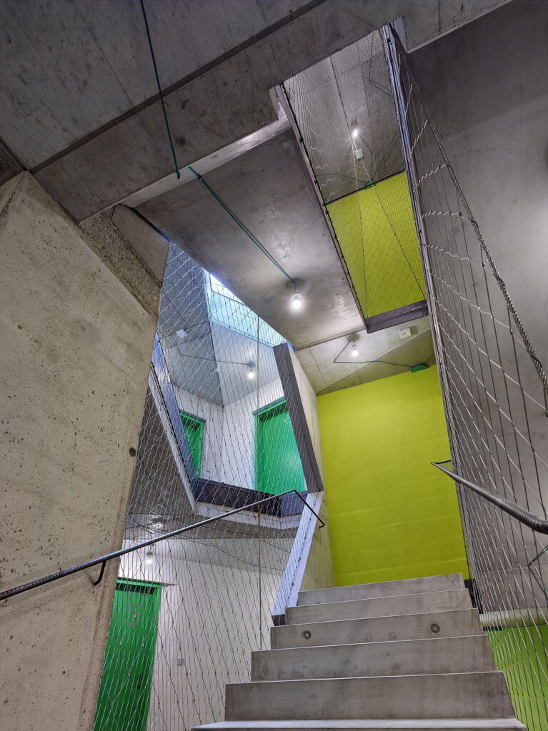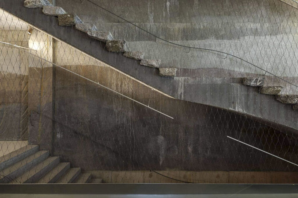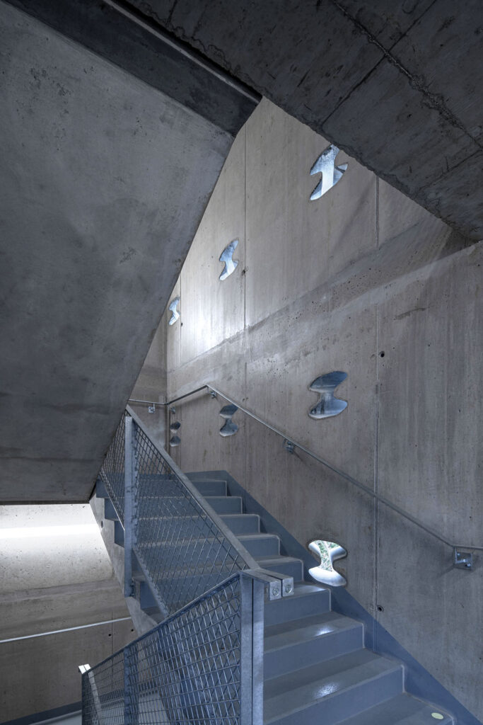Chodby a schodiště jsou expresivně pojaté v pohledovém betonu a návštěvník má pocit, že se ocitl v přírodní soutěsce, autor: Stanislav Fiala / Fiala + Němec, foto: Filip Šlapal