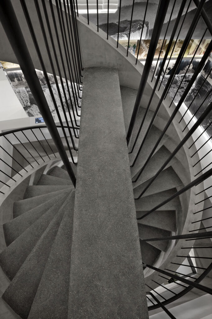 Betonové schodiště ve tvaru dvojité šroubovice DNA je jedním z hlavních exponátů Muzea Krkonoš DNA ve Vrchlabí (schodiště – exponát) Autor: koucky-arch.cz / Šárka Malá a Roman Koucký, realizační firma: DNA DESIGN, s. r. o., foto: Ester Havlov