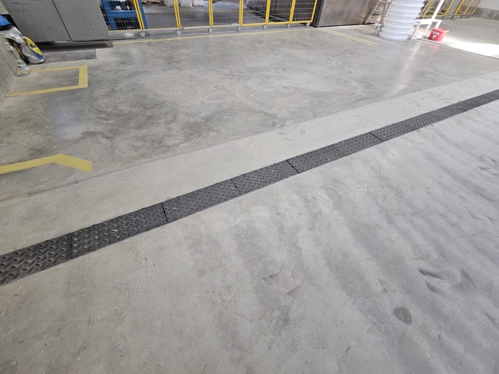 Žlaby jsou osazeny do podlahy ve tvaru T v celkovém rozsahu 20 metrů. Čela žlabů byla dobetonována na místě dle skutečné situace. MEA pomohla s rychlým vyřešením potřeb výrobní firmy – žlaby dodala za pouhé 2 dny.