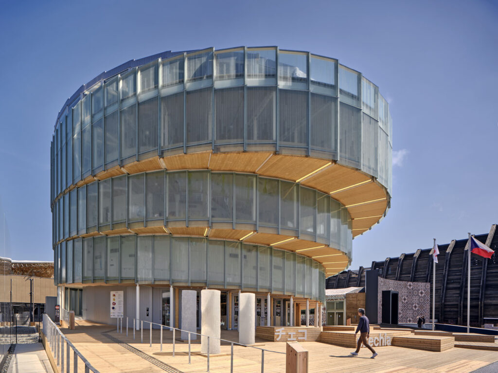 Světová výstava EXPO v Ósace potrvá do 13. října 2025. Byl pro ni vytvořen umělý ostrov Yumeshima, hlavní část výstaviště obepíná dřevěný prstenec od japonského architekta Sou Fujimota. Česká republika se jako samostatný stát účastní výstavy EXPO pošesté. Funkci generálního komisaře zastává Ondřej Soška. Jeho kancelář vyhlásila v prosinci 2022 architektonickou soutěž, odborná porota pak vybrala vítězný návrh ve tvaru skleněné spirály. Jeho autory jsou Michal Gabaš, Tomáš Beránek a Nikoleta Slováková ze studia Apropos Architects ve spolupráci s Terezou Šváchovou.