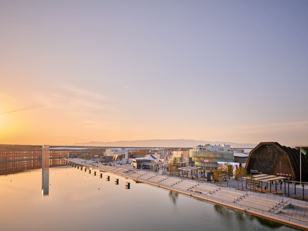 Objekt dosahuje v rámci EXPO areálu maximální možné výšky 17 m, půdorysně se dělí na 36 segmentů. Jednotlivé segmenty člení v nižších patrech kružnici, ve vyšších patrech plynule přecházejí do elipsy definující obálku a hmotu pavilonu. Autoři projektu kladli mimo jiné důraz na modularitu, prefabrikovatelnost a sofistikovanost konstrukce i samotné realizace. Jejich koncept tkvěl v principu efektivně sestavitelných segmentů.
