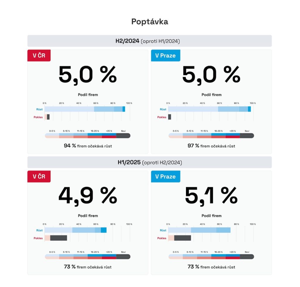 Zájem o bydlení poroste i ve druhé polovině roku. Předpokládá se, že poptávka ještě zesílí a navýší se o 5 %, a to jak v celé České republice, tak v Praze. A v první polovině roku 2025 by se měla čísla zvednout o dalších 4,9 %, respektive až o 5,1 % v Praze.