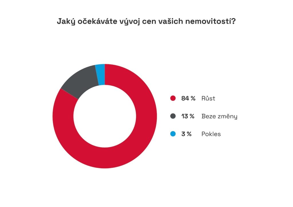 Většina developerů předpokládá, že ceny nemovitostí budou i nadále růst. Podle průzkumu 84 % respondentů očekává, že ceny jejich nemovitostí v nadcházejícím období porostou, přičemž průměrné navýšení je odhadováno o 7 %. Toto navýšení je způsobeno především přetrvávající vysokou poptávkou, nedostatečnou nabídkou nových bytů a rostoucími stavebními náklady.  Významný narůst cen je patrný zejména ve velkých městech, jako je Praha, kde silná poptávka a omezené možnosti výstavby přispívají k dalšímu tlaku na ceny.