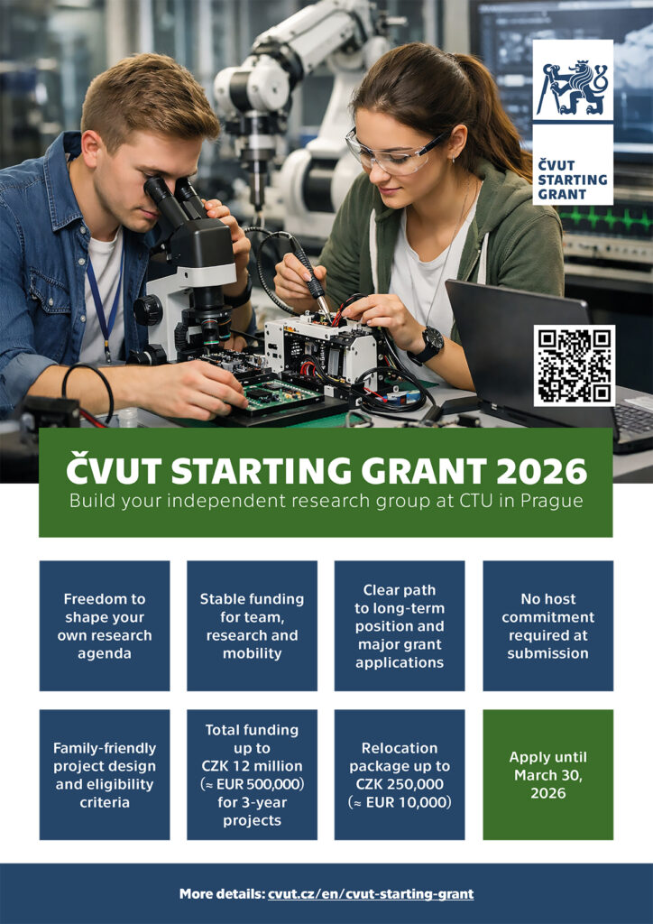Prvním krokem vedoucím k naplnění mise nového rektora je zahájení programu pro excelentní mladé vědce a vědkyně ČVUT Starting Grant. Spouští ho zároveň se svým nástupem do funkce a cílem je podpořit začínající akademiky se zahraniční zkušeností a špičkovými výsledky, aby zahájili svou samostatnou vědeckou dráhu právě na ČVUT. Do programu se mohou hlásit od 2. února do 30. března 2026 a pokud uspějí, získají až čtyři miliony korun ročně po dobu tří let. Peníze jsou určené k založení výzkumnéskupiny, kterých může vzniknout celkem až deset.