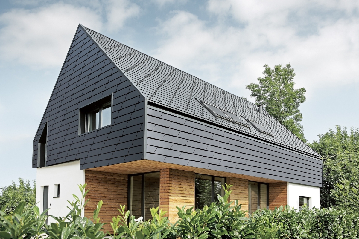 Fasádní šindel PREFA XL spojuje osvědčený kosodélníkový tvar s moderními vlastnostmi high-tech hliníkového materiálu. To z něj dělá perfektní krycí materiál i pro objekty s architektonicky náročnými fasádními plochami. Nově je nyní v nabídce v rozměru 840×240 mm.