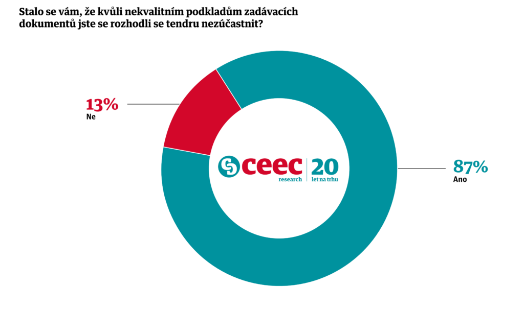 „Praxe veřejného zadávání potřebuje více předvídatelnosti, profesionality a skutečného partnerství. To potvrdily samotné stavební firmy na námi organizovaných kulatých stolech s jednotlivými ministerstvy. Alarmující je, že 87 % stavebních firem se v minulosti rozhodlo neúčastnit výběrového řízení kvůli nekvalitním nebo neúplným zadávacím podkladům,“ prohlásil Michal Vacek, ředitel CEEC Research. Průzkumu se účastnilo 160 ředitelů stavebních společností napříč celým trhem.
