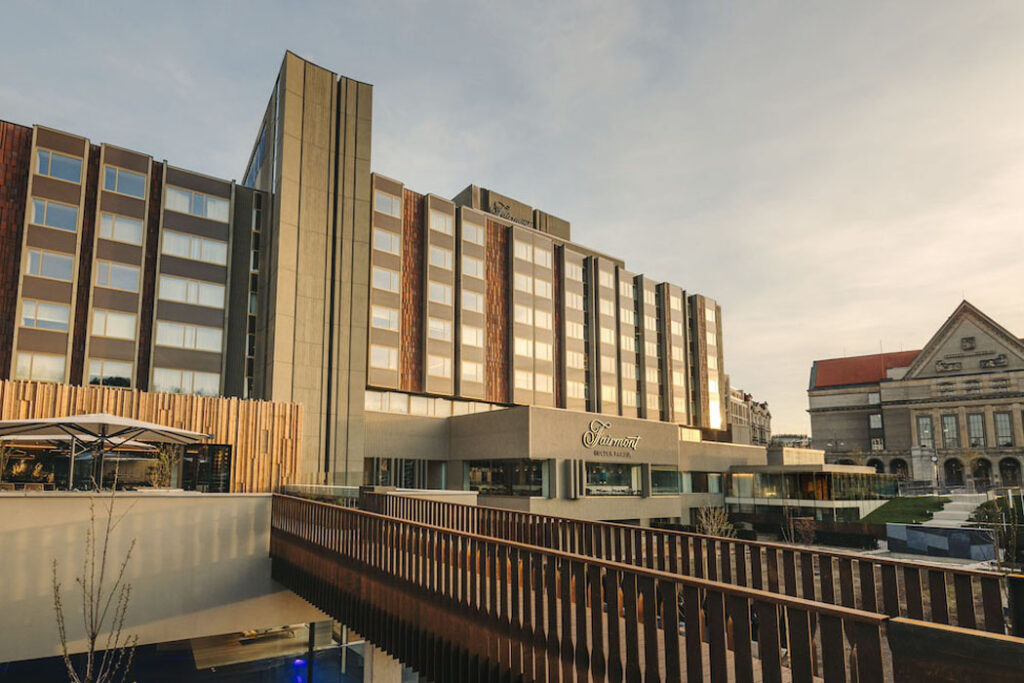 Rekonstrukce vedená ateliérem TaK Architects zachovala původní architekturu budovy, kterou v roce 1974 v brutalistickém stylu navrhl český architekt Karel Filsak. Zároveň však ve spolupráci s Fairmont Hotels & Resorts přináší nový koncept pohostinství propojující historii se současným luxusem. Budova, v níž v minulosti bydlely významné osobnosti politické, hudební, filmové či sportovní sféry jako například Richard Nixon, Margaret Thatcherová, Michael Jackson, Elton John nebo Meryl Streepová, tak opět bude moci ukázat to nejlepší z československého i současného designu a umění. Návštěvníci uvidí obnovený ikonický betonový strop konferenčního sálu od Jana Šrámka, lustry od Reného Roubíčka, svítidla od Huga Demartiniho, stropní řezbářské práce Čestmíra Kafky, sloupové sochy od Miloslava Hejného, monumentální dřevěné stěny od Josefa Klimeše nebo skleněné tavenice od výtvarníků Stanislava Libenského a Jaroslavy Brychtové a mnohem více.