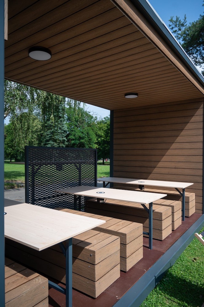 Venkovní coworkingový prostor s hybridním modulem vznikl v odpočinkové zóně na Černé louce v Ostravě. „Kromě návrhu, projektové dokumentace a výroby udržitelného a inovativního modulu jsme projekt podpořili finančně, aby byla zajištěna soběstačnost outdoorového coworkingového místa bez nutnosti napájení z distribuční sítě,“ uvedl Miroslav Krop, ředitel závodu Ostrava, stavební skupina HSF System.