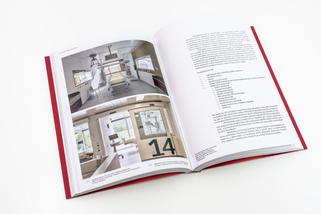Kniha popisuje obecné zásady navrhování nemocnic, jejich základní vnitřní i vnější provozní vazby. Přibližuje nejen současnost a historii architektury nemocnic ale doplňuje i výhled do budoucnosti. Zkoumá vztahy mezi prostředím, personálem a pacientem, které hrají podstatnou roli v efektivitě léčby i spokojenosti personálu. Do detailů probírá potřeby všech provozů nemocnice i navazujících ambulantních služeb. Text je ilustrován provozními schématy a příklady špičkových domácích i zahraničních realizací.