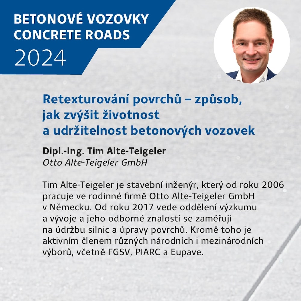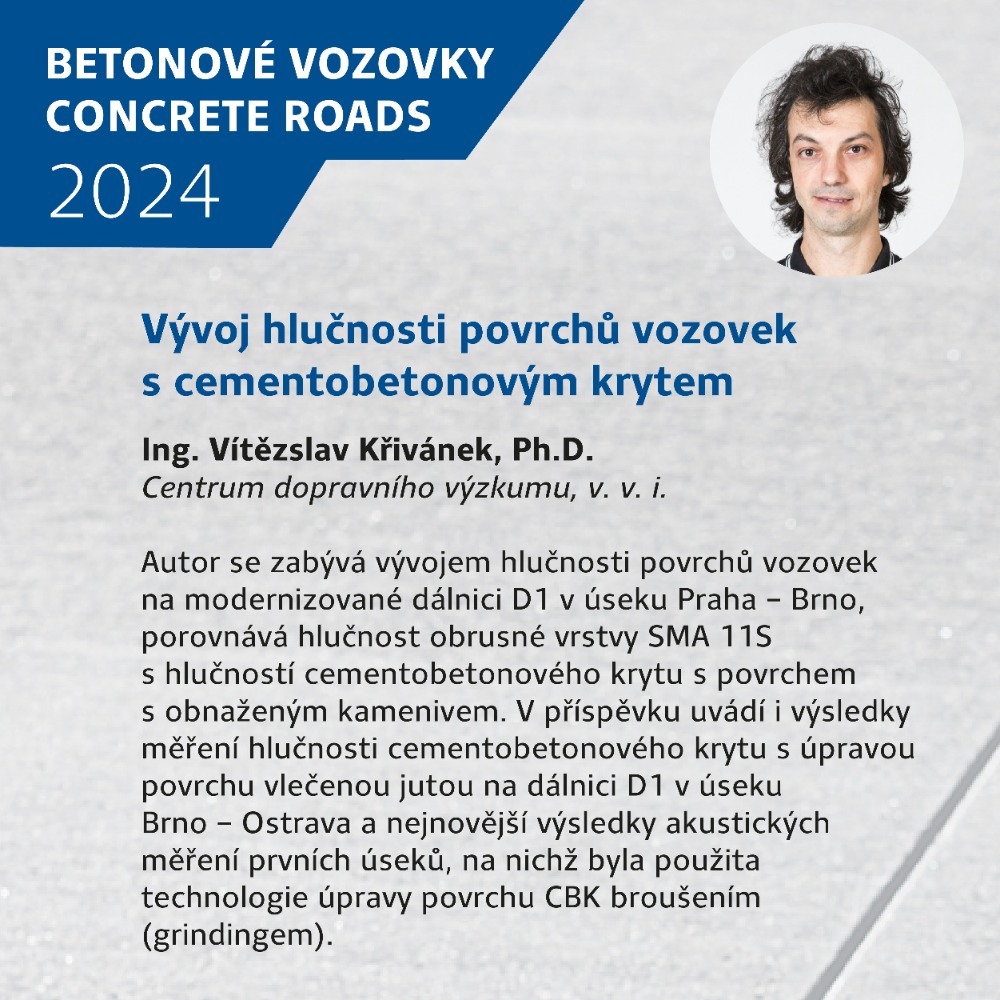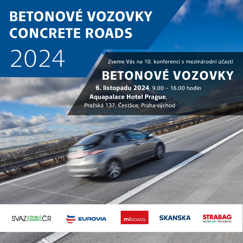 Ve středu 6. listopadu 2024 se v Aquapalace Hotelu Prague v Čestlicích uskuteční 10. ročník konference s mezinárodní účastí BETONOVÉ VOZOVKY 2024. Na konferenci se přihlásilo více než 250 účastníků z 80 společností, kteří si budou moci vyslechnout 5 zahraničních a 6 českých přednášejících. Jejich přednášky budou věnovány praktickým zkušenostem s realizací a provozováním betonových vozovek, zavádění nových výrobků do praxe a informacím o dalším vývoji technologie výstavby cementobetonových krytů, jehož cílem je zvýšení životnosti cementobetonových krytů při dodržení předpisů pro ochranu životního prostředí a bezpečnostních předpisů. Bude zajištěno tlumočení zahraničních příspěvků do češtiny a českých vystoupení do angličtiny.