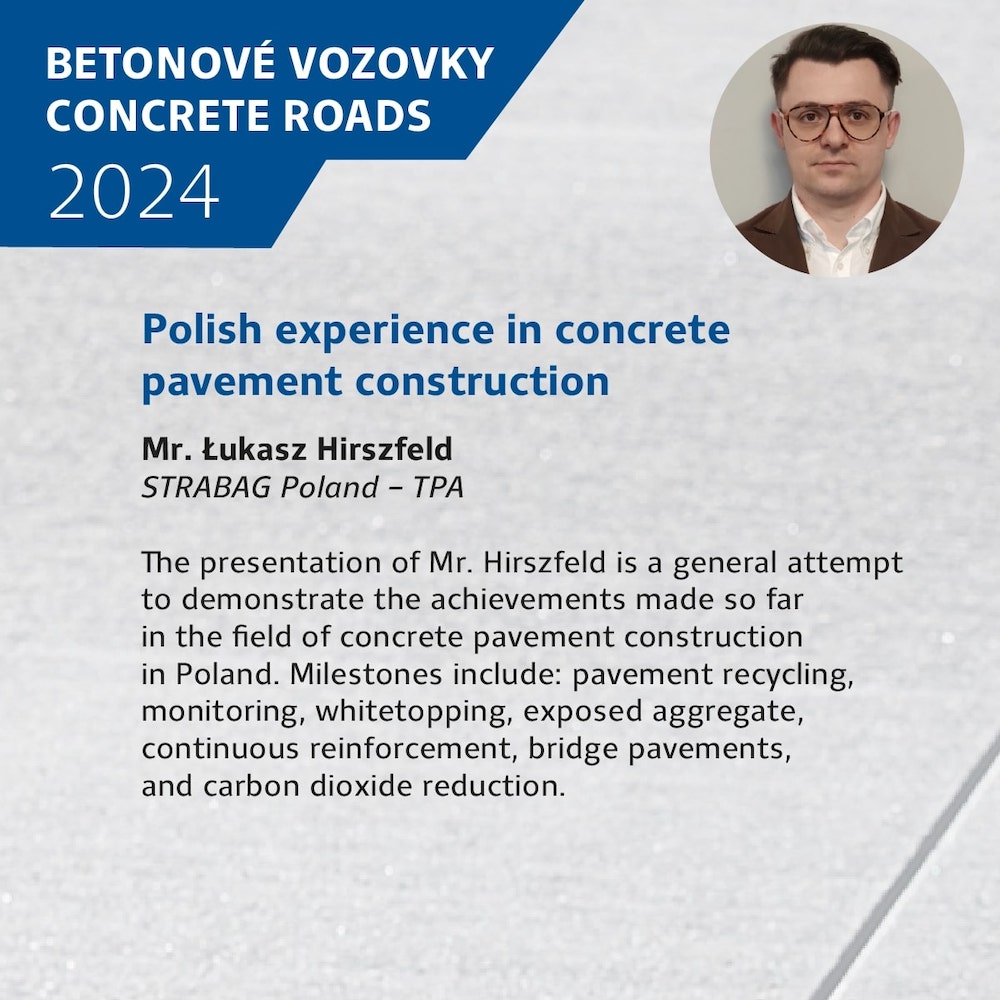 Příspěvky zahraničních autorů se zabývají otázkami projektování, kvality, zvyšování životnosti cementobetonových krytů a zkušenostem s používáním směsných cementů do vozovkového betonu. Jedním z témat bude i retexturování povrchu cementobetonových krytů, jako technologie, jak zvýšit životnost a udržitelnost betonových vozovek. Retexturováním povrchu lze zajistit tišší povrch s velmi dobrou rovností a s dobrými protismykovými vlastnostmi.