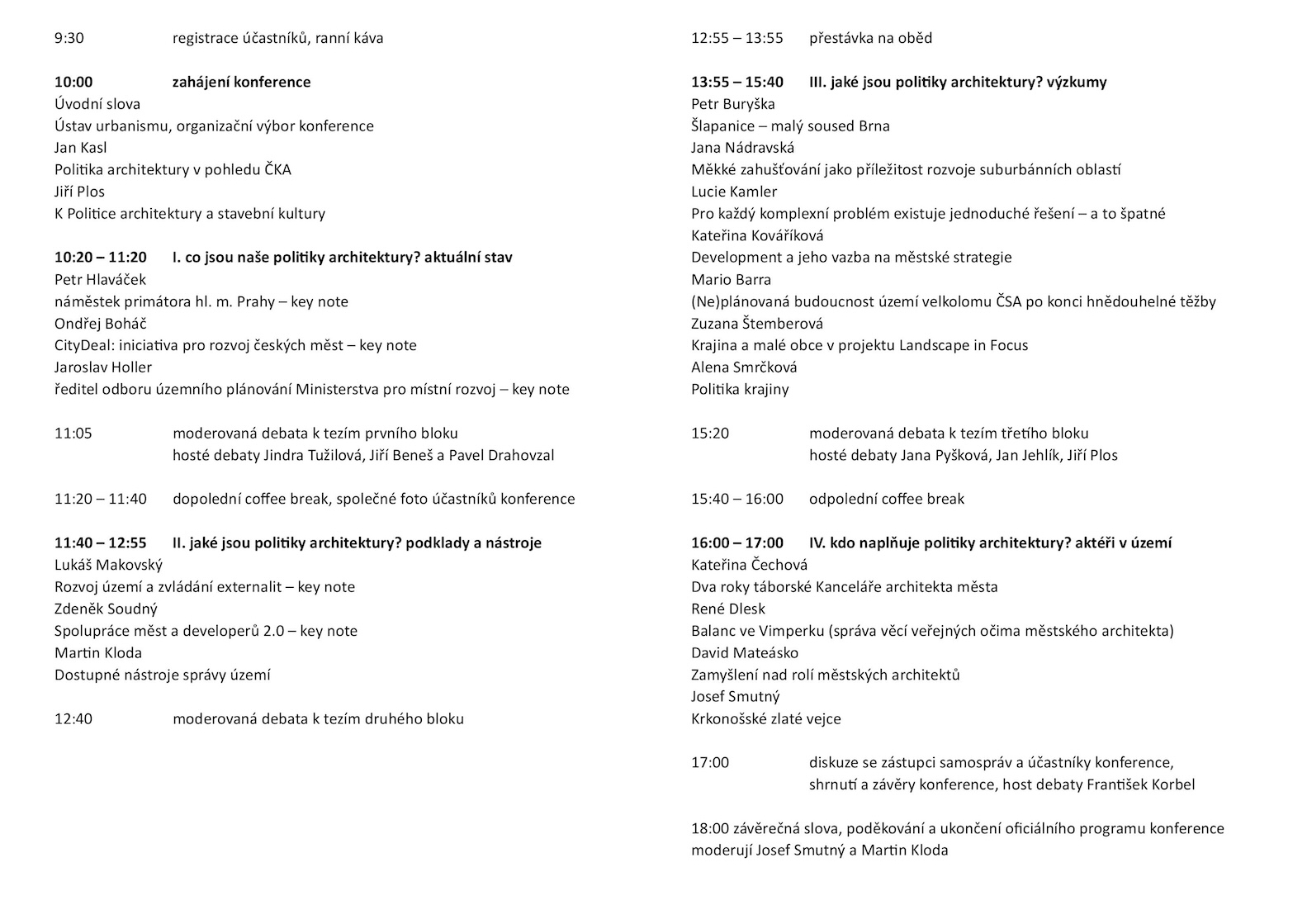 Záštity nad pořádáním konference převzali: Doc. Ing. arch Petr Hlaváček, náměstek primátora hl. m. Prahy, Česká komora architektů
