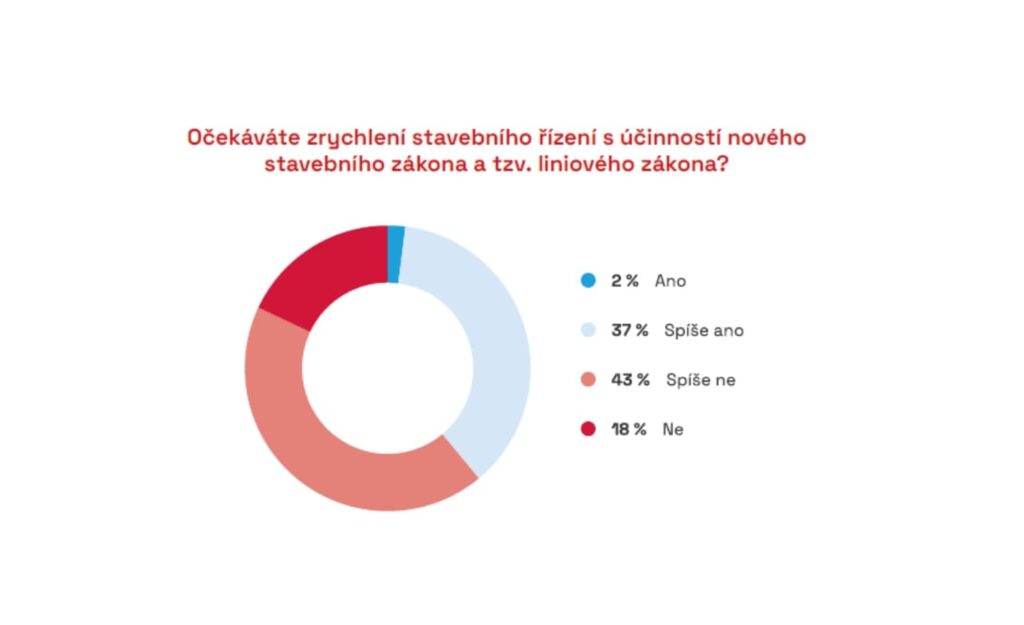 Dosavadní verze stavebního zákona často vedla ke zbytečně dlouhým a složitým administrativním postupům, což brzdilo realizaci stavebních projektů. Nová verze by měla stavebním společnostem pomoci zrychlit získaní stavebních povoleni a celkový průběh výstavby díky zjednodušeným a efektivním procesům. Pouze 2 % oslovených ředitelů stavebních firem očekává výrazné zrychleni stavebních řízení po změnách v zákoně, zatímco 37 % dotázaných je k novinkám opatrně optimistických a většina (61 %) je skeptická. Je pravděpodobné, že se zákon po uvedení do praxe bude ještě dále měnit a upravovat tak, aby lépe naplnil svůj účel a očekávané změny byly skutečně v praxi znatelné.