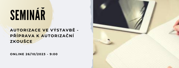 Připravujete se na autorizační zkoušku? Využijte našeho online semináře Autorizace ve výstavbě – příprava k autorizační zkoušce, který Vám s přípravou pomůže! Provede Vás jím Ing. Jindřich Pater, lektor a autor pomůcek profesního informačního systému PROFESIS, kde přispívá řadu let k celoživotnímu vzdělávání rozhodujících účastníků výstavby: projektantů, stavbyvedoucích, technických dozorů stavebníka a koordinátorů BOZP na staveništi.