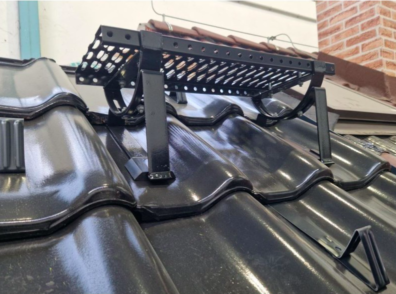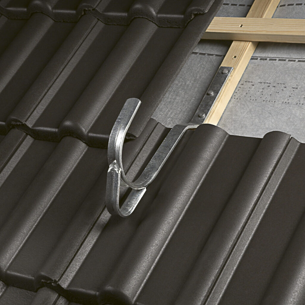 Z hlediska bezpečnosti práce, pokud provádíte činnost ve výšce 1,5 m a více, už musíte využít záchytný systém – tzn. při čištění okapu nebo když lezete po žebříku, tak byste měli být zajištěni. Na střeše vytvoříte kotvící bod pro zachycení jedné osoby nebo pro zavěšení žebříku bezpečnostním střešním hákem typ A. Doporučená montáž je pomocí tří šroubů M8 zajištěných matkou s bezpečnostní podložkou skrz kontralať a krokev. Bezpečnostní hák typ a z nabídky HPI-CZ pro pálené a betonové tašky je k dispozici ve čtyřech barvách pro sladění s krytinou.
