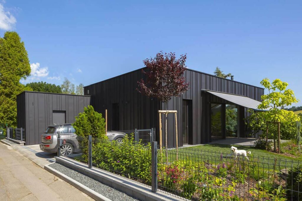 V tomto případě převládl požadavek investora – chtěli zděný dům. Tomu se podřídil návrh. Tím, že říkám, podřídil, nemyslím, že jsme dělali nějaké kompromisy, naopak. Prostě zděný dům, jak má být. Vlastně dostal trochu netradiční kabát z hliníkových svitků.