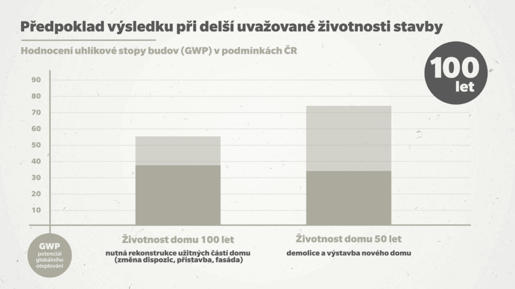 Stavební materiály s kratší životností vedou k častějším rekonstrukcím a tím vyšší spotřebě stavebního materiálu a generování stavebního odpadu. To jde proti samotné podstatě udržitelného stavění. Zatímco cihlový dům vydrží až 150 let, u sendvičové dřevostavby je za tu dobu nutné dvakrát obnovit celou konstrukci. Takový přístup ve výsledku zanechává výrazně větší uhlíkovou stopu, než by naznačovala původní fáze výroby.