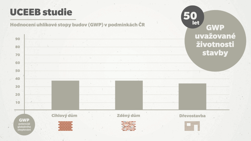 Cílem studie bylo porovnat environmentální dopady různých typů konstrukčních řešení v celém jejich životním cyklu, tedy od vzniku až po likvidaci – „from cradle to grave” v horizontu 50 let. Pouze na základě takto komplexního přístupu je možné vytvořit podklad pro kvalifikované rozhodování. Výsledky ukazují, že rozdíly mezi jednotlivými konstrukčními variantami jsou minimální. Rozdíl v globálním oteplovacím potenciálu (GWP) mezi cihelnou, pórobetonovou a sendvičovou stěnou činí pouhých 2,72 kg CO₂ na m² za rok. Za období 50 let to odpovídá emisím, které vzniknou při cestě automobilem z Prahy do Brna a zpět.