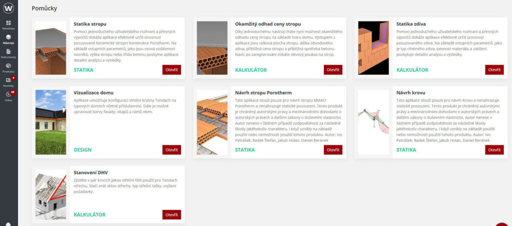 Společnost Wienerberger ve spolupráci s ČVUT připravila rozšíření nástrojů pro projektanty. Jde o dvojici moderních a uživatelsky přívětivých aplikací, díky nimž lze provést hospodárný a spolehlivý návrh konstrukcí s využitím výrobků a systémových řešení od společnosti Wienerberger. Pomocí nich lze navrhnout a posoudit konstrukci krovu a Miako stropu Porotherm pro libovolné zatížení a statické schéma (spojitý nosník, konzola).