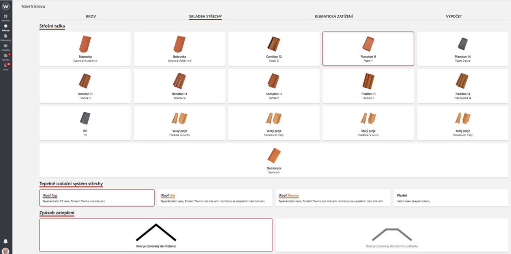 Po návrhu dimenzí krovu je třeba určit zatížení. To je zde připraveno prakticky pro každého. Interaktivním způsobem určíte skladbu – můžete volit některou z navržených (obr. 6) či si navolit svou individuálně. Program pak na základě skladby a vzdálenosti krokví určí přesně součinitel prostupu tepla i se započítáním vlivu trámů.
