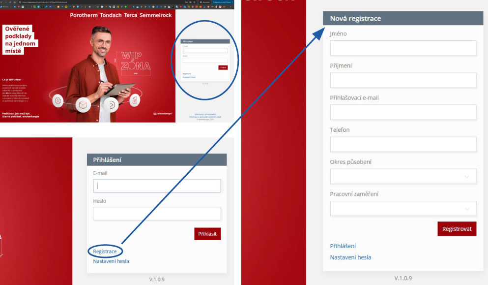 Jak začít? Přihlaste se do WIP zóny na stránce www.wipzona.cz. Objeví se přihlašovací okno – viz obr. 1. Pro ty, kteří zde ještě nejsou registrováni, stačí kliknout na Registrace, vyplnit své údaje a potvrdit tlačítkem Registrovat (šipka). Po registraci přijde uživateli na email odkaz pro vytvoření hesla. Po úspěšném přihlášení se dostaneme na nástěnku WIP zóny (obr. 2).