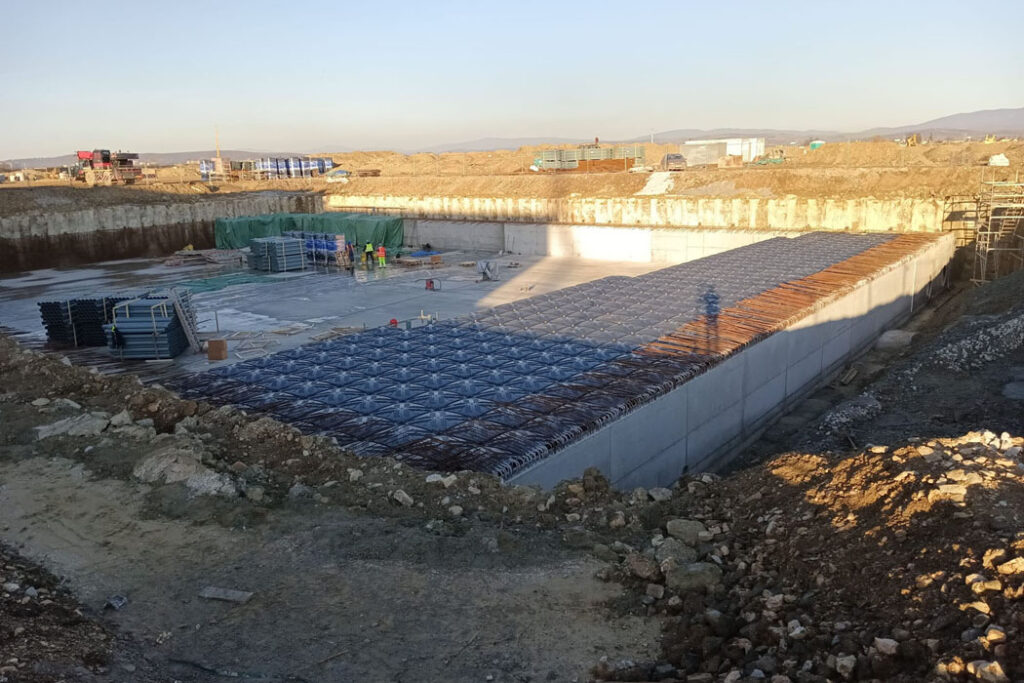 Projekční tým MEA navrhl ale jiné řešení. Při statických výpočtech musel zohlednit vysokou hladinu spodní vody a také požadavek na uložení nádrže hluboko pod zem do téměř 7 metrů.
