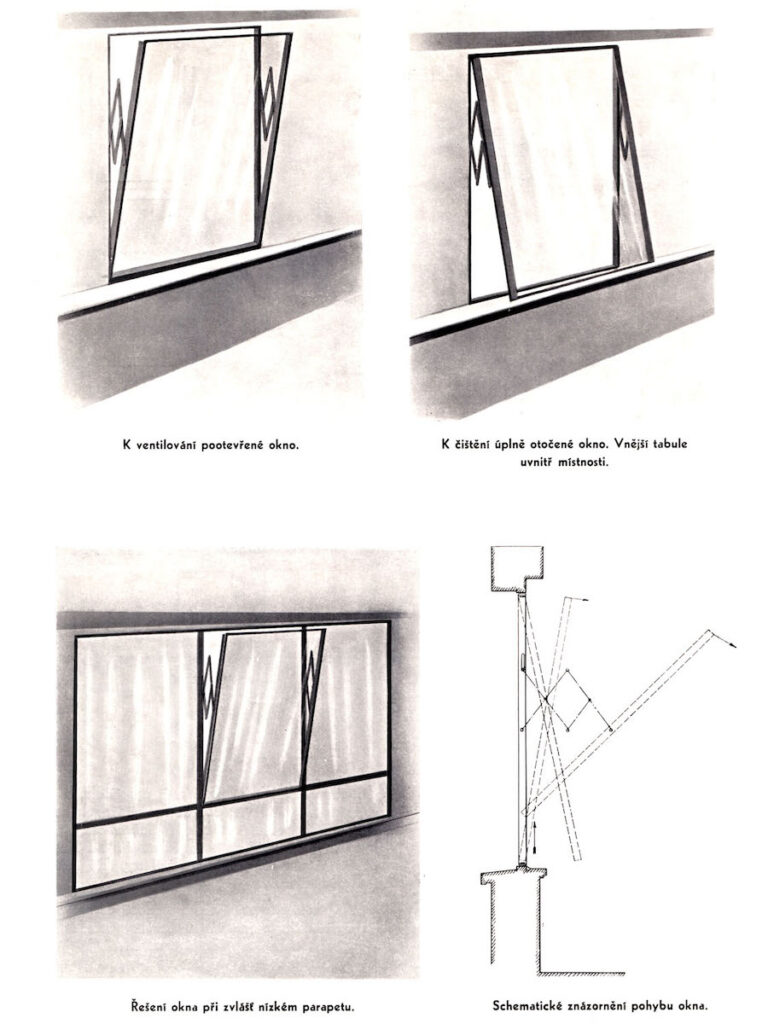 Byly to evidentně dobré zkušenosti s těmito dílci, které architekta Černého přivedly k rozhodnutí opatřit si vlastní vilu budovanou při kolonii Baba stejně sofistikovaným typem oken. Architekt ale sáhl po dřevoocelových oknech pražské firmy V. A. Skokan, jejíž sortiment vynikal promyšleným systémem otevírání, který se opakoval prakticky u všech typů oken, jimž dominovala značka Cristal. Bylo to zdvojené posuvné a otáčivé okno, sestávající z dvou sdružených křídel, z nichž jedno se dalo vysunout „do rovnoběžné polohy s průčelím a druhé za něj libovolně zasunouti“.4 Cristal vyráběný z dutých válcovaných profilů bylo možné také otvírat klasickým způsobem anebo jen částečně, jako tzv. větračku. Mimochodem, až donedávna jimi byl osazen administrativní trakt smíchovského nádraží (1953–1956) postaveného podle projektu architektů Jana Zázvorky a Jana Žáka.