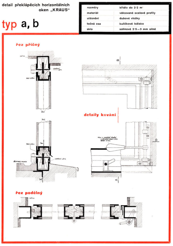 Přes řadu technických fines ale prim udávala bratislavská firma A. Kraus, která k výrobě svých vysoce estetických oken využívala strojírnu Rosické báňské společnosti v Zastávce u Brna. Posuvnými nebo překlápěcími okny patentu Kraus vybavenými dřevěnou vložkou tak byly osazeny ty nejvýznamnější funkcionalistické budovy v Československu. S oblibou je užíval zejména Bohuslav Fuchs, a to nejen na svých brněnských stavbách v čele s Masarykovým studentským domovem (1929–1930) či Moravskou bankou (1928–1931), na níž se autorsky podílel Ernst Wiesner. V případě staveb nesených ocelovou kostrou byla okna zpravidla montována přímo do ní, což přinášelo řadu výhod. Především se tak ale zhmotňoval sen o architektuře uskutečňované z přesných dílců produkovaných sériově, průmyslovou velkovýrobou.