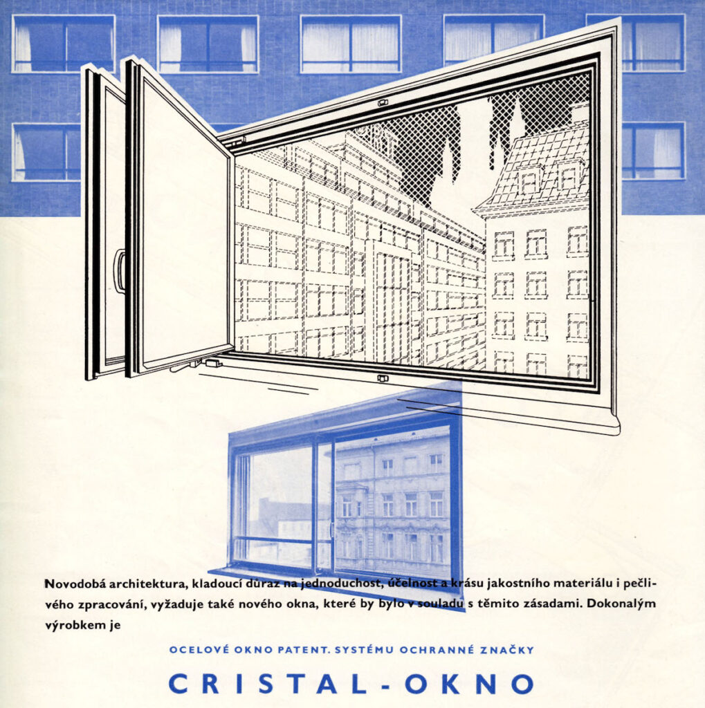 Když na jaře roku 1926 architekt Jaromír Krejcar představil druhou studii Olympicu, multifunkčního domu, který významně ovlivnil českou architekturu, sotva mohl tušit, jak moc se jeho realizace nakonec bude lišit. Přitom účinek estetiky devětsilského poetismu, kterou Olympicu demonstrativně propůjčil, neoslabila absence světelné reklamy jako spíš těžkopádná dřevěná okna. Srovnáme-li vizuálně podmanivou skicu Olympicu s fotografií realizace, je víc než zřejmé, že to byla okna, která v jeho estetice, stejně jako v případě funkcionalistické architektury, hrála jednu z hlavních rolí. Okna nové doby, jejichž úkolem bylo setřít také hranici mezi vnitřním a vnějším prostorem, proto musela mít velké, minimálně přerušované plochy, vybavené proti přehřívání interiéru buď skly s odrazivou polozrcadlovou vrstvou, anebo důmyslnou stínicí technikou. Hlavně však musela být horizontální a disponovat mechanismy umožňujícími posouváním, překlápěním či otáčením nastavovat nejrůznější polohy otevírání a tím ženám usnadňovat jejich očistu. Zkrátka to musela být sofistikovaná okna, která svou konstrukcí, provedením a také vzezřením dále posouvala novou estetiku, kterou se v praxi začalo dařit uskutečňovat teprve díky rychlému rozvoji moderních stavebních materiálů a technologií. Jenomže taková okna Krejcar v roce 1927 neměl k dispozici. Lépe řečeno, pracovat mohl pouze s jejich málo dokonalými předchůdci, příliš drahými okny zhotovenými manufakturním způsobem. Nedivme se proto, že v pionýrských letech si je mohla dovolit jen hrstka stavebníků, kterým víc než na penězích záleželo na prvotřídní reklamě. A k ní nová architektura okatě pracující s nejmodernějšími stavebními komponenty rozhodně náležela. Mezi takové podnikatele patřila firma A. Lindt, která si v letech 1925–1927 na Václavském náměstí postavila podle plánů architekta Ludvíka Kysely obchodní dům, který se stal vůbec první nekompromisně moderní budovou v centru Prahy. A také stavbou, jejíž podobu zcela zásadně spoluurčují kovová okna, v tomto případě značky Okenia. Jaká byla jejich pořizovací cena, sice netuším, nicméně ceny těchto dílců začaly klesat až na přelomu 20. a 30. let, kdy se vedle zahraničních typů (například britské značky Crittall, pro něž se architekt J. K. Říha rozhodl v případě pražské centrály Báňské a hutní společnosti) objevilo na trhu nepřeberné množství oken domácí provenience. S okny Crittall, která se pro náš trh vyráběla v německé filiálce, chtěla pracovat i legendární dvojice H+H, architekti Josef Havlíček a Karel Honzík, kteří jimi zamýšleli opatřit své životní dílo, mrakodrap VPÚ v Praze (1929–1934). V průběhu projektových prací ale došlo k řadě změn. Navrhovaný ocelový skelet tak nahradil železobetonový a britská kovová okna zase dřevěná domácí provenience. Přesto se v budově kovová okna v menší míře nakonec uplatnila – podél hlavních a vedlejších schodišť, která původně protínaly vertikální pásy oken značky Ippen. Právě tato firma patřila mezi nejvýznamnější výrobce kovových oken v ČSR. Vedle ní to byly společnosti A. Kraus, V. A. Skokan – Továrna hygienických a technických zařízení a známý koncern Ringhoffer-Tatra.