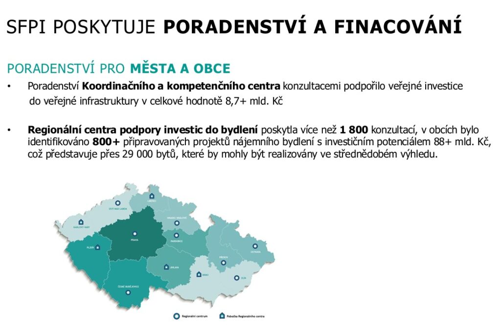 Program Dostupné nájemní bydlení, který realizuje Státní fond podpory investic, vyvolal velký ohlas zejména mezi obcemi. „Aktuálně zpracováváme 45 žádostí v objemu 2,48 mld. Kč, které by měly podpořit vznik 725 bytů,“ říká ředitel Státního fondu podpory investic Daniel Ryšávka a dodává, že podstatnou měrou k tomu přispěla poradenská činnost SFPI.