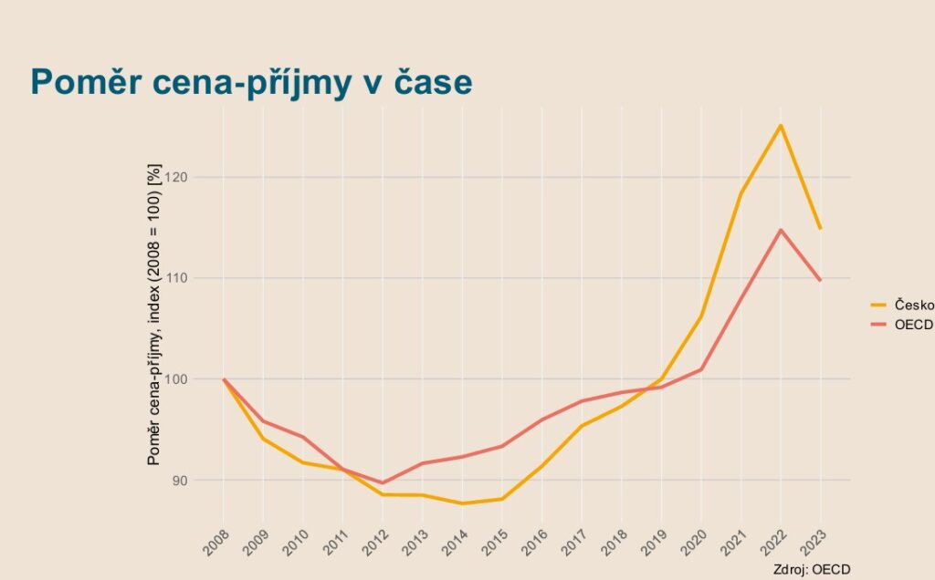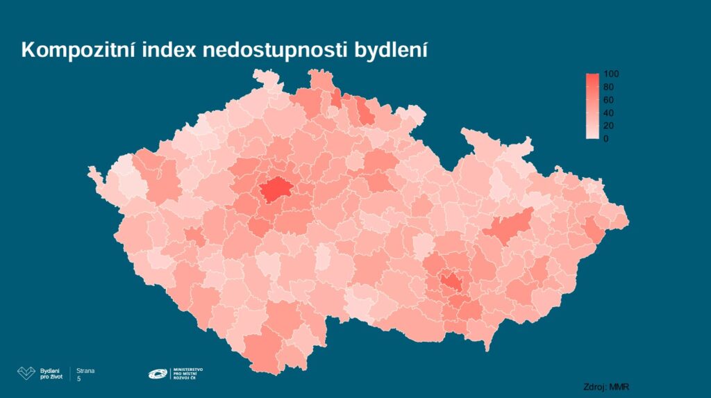 Náročnost pořízení a udržení si bydlení vzhledem k příjmům domácností se v posledních letech v Česku výrazně zvýšila. Výrazně horší je situace hlavně ve velkých městech. Průměrná domácnost potřebuje přibližně pět ročních příjmů na koupi bytu o velikosti 60 m², v Praze je to o tři více. V dlouhodobém srovnání je sice Česko poblíž průměru zemí OECD, trend se ale zhoršuje rychlým tempem. MMR používá jinou metodiku než většina analýz v médiích – sleduje celé domácnosti, které se na trhu ohlížejí také po menších a starších bytech.