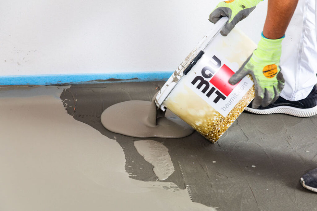 Na čistý podklad přichází nejprve základní nátěr a vybírat lze podle jeho nasákavosti mezi penetrací Baumit Grund nebo kontaktním můstkem Baumit SuperPrimer. Po vylití podlahy cementovou samonivelační stěrkou Baumit Nivello 20 v požadované tloušťce je nutné její důkladné odvzdušnění pomocí ježatého válečku. V obecné rovině vykazují cementové stěrky při svém zrání určitou míru smršťování, a proto je důležité dodržet správné rozložení dilatačních spár (přibližně po 6 metrech). Stěrka Baumit Nivello 20 je však díky svému novému složení daleko méně náchylná k následnému pnutí a míře smršťování. Z hlediska podlahové výměry lze pro aplikaci této stěrky volit strojní nebo ruční zpracování. V prvním případě je navíc možné využít zapůjčení odpovídající strojní technologie, a to po konzultaci s aplikačním technikem společnosti Baumit.