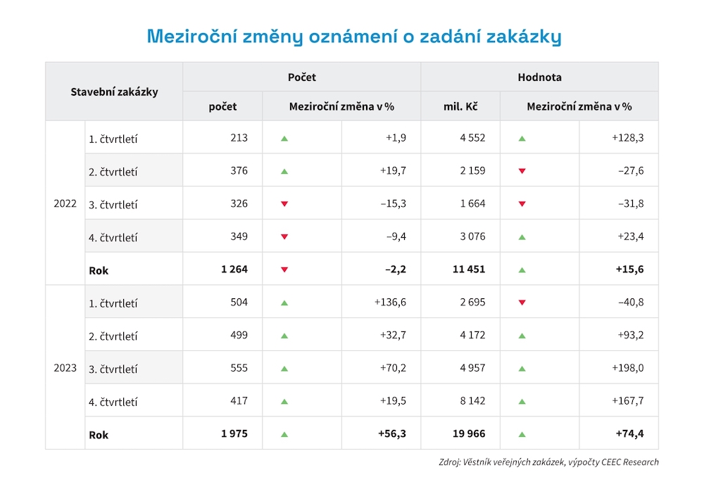 Počet oznámení o veřejné zakázce na projektovou činnost meziročně stoupl. Hodnota oznámení o zakázce také stoupla, a to o 56,3 %. Zrušeno bylo 11 % z oznámených projektových zakázek. Vyplývá to z analýzy společnosti CEEC Research.