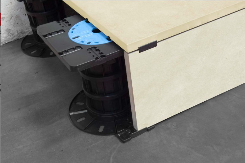 Součástí systému ARKIMEDE je i sada pro řešení boční pohledové strany u vyvýšených teras. I ta nabízí jednoduchou montáž. Zahrnuje polypropylenové hlavové nástavce na terče, spodní nástavce a stavitelné držáky, které umožňují uchycení obkladových materiálů v tloušťce od 8 až do 38 mm.