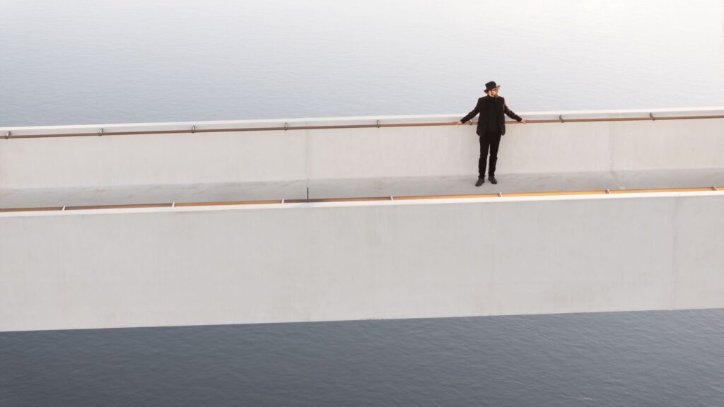 • Podrobný pohled na koncept lávky jako minimalistického sochařského díla.