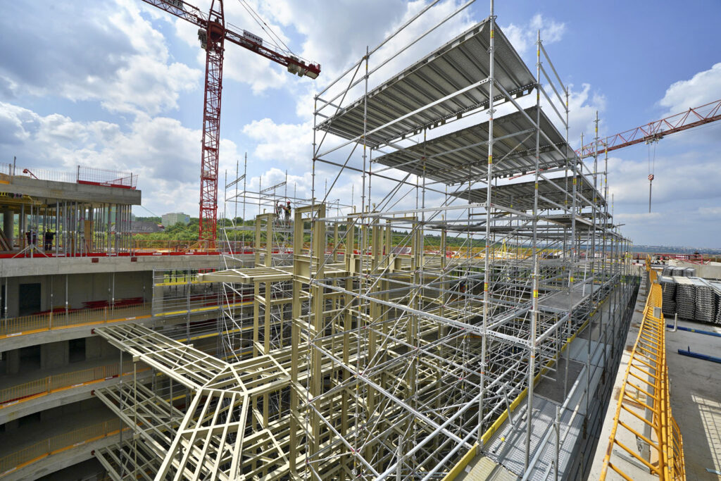 Na stavbu bylo dodáno také 2000 m2 nosníkového stropního bednění MULTIFLEX s plnostěnnými nosníky VT 20, které bylo podepřeno stojkami PEP Ergo.