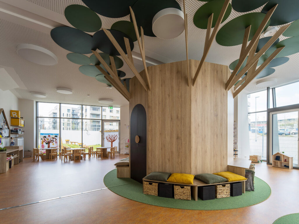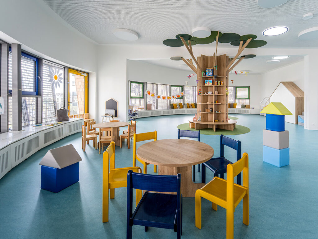 Nová mateřinka stojí na náměstí rezidenční čtvrti SUOMI Hloubětín v Praze 9. Ta zahrnuje téměř 900 bytů, prostory pro obchody a služby i relaxační zóny. Školka s kapacitou až 100 dětí, jejímž provozovatelem je společnost Mateřská škola EduArt, tvoří spolu se sousedním dětským hřištěm centrum zdejšího komunitního života.