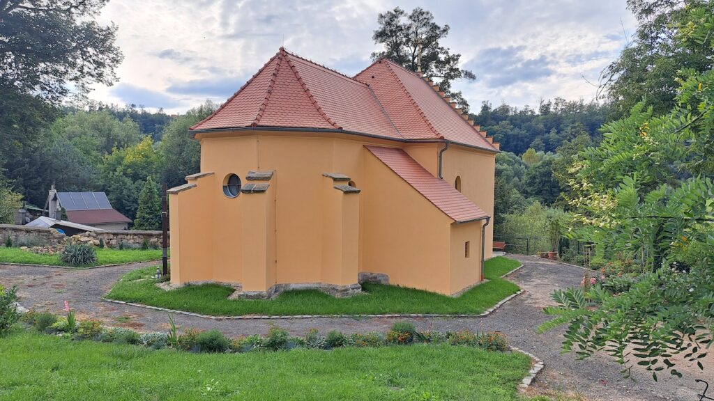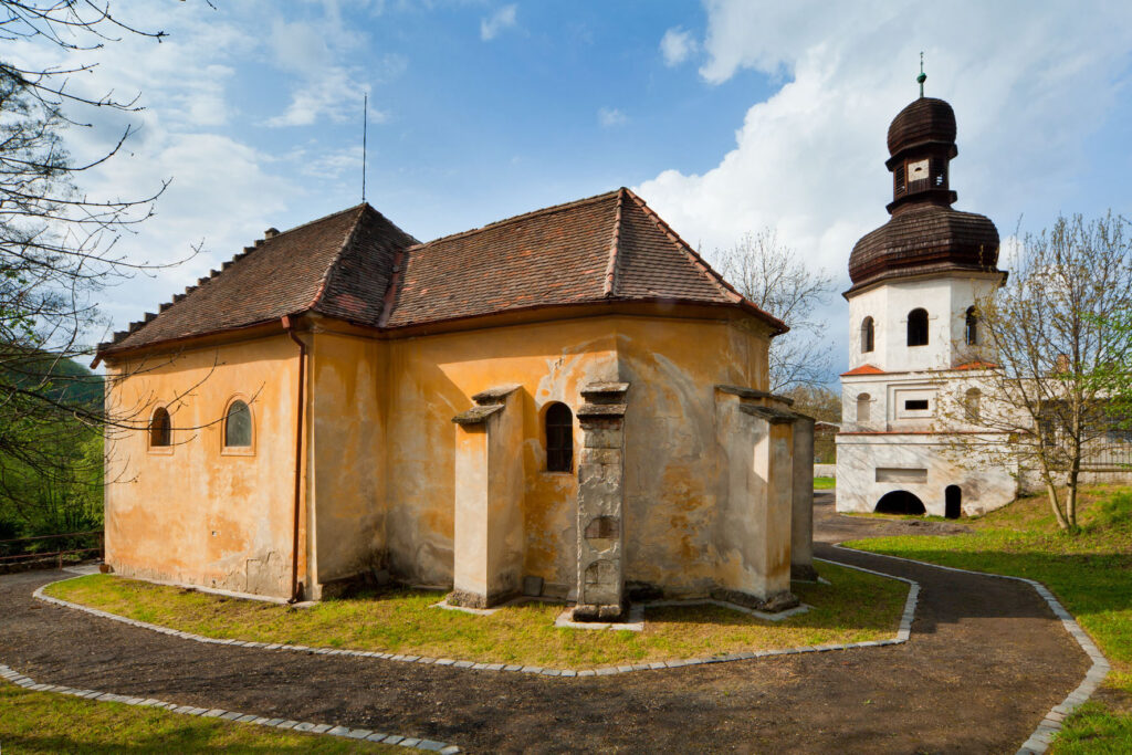 Původně raně gotický kostel ze 13. století byl kolem roku 1770 barokně přestavěn. Přestavba přinesla úpravu tvaru oken, novou sakristii a vnitřní zařízení. Kostelu dodnes chybí věž, její funkce však plní samostatná zděná zvonice, stojící v severní části zdi někdejšího hřbitova. Původně šlo o dřevěný objekt, který kolem roku 1700 nahradila atypická barokní stavba. Na čtvercové přízemí, které sloužilo jako kostnice, navazuje osmistěnné zvonové patro, které je zakončené střechou ve tvaru cibule s hodinami. Ve zvonici je dochován pozdně gotický zvon ulitý (jak dokládá nápis kolem koruny zvonu) roku 1503 mistrem Bartolomějem z Nového Města Pražského.