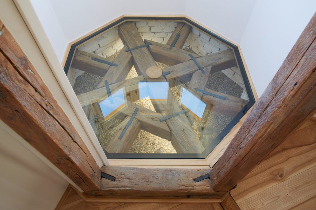 „Chtěli jsme lehký prosklený objekt, původně měla být přístavba třípodlažní, ale uvědomili jsme si, že bychom tím „zazdili“ krásný malovaný štít, který by byl schován do interiéru. Pan architekt ale přišel s geniálním nápadem odskočené přístavby ve třetím podlaží, a i když to bylo na úkor „výdělečné“ plochy, tak přece ten krásný štít s malůvkami neschováme,vysvětluje investor a jen tímto detailem potvrzuje oboustrannou citlivost a respekt k historii, který provázel každé rozhodnutí.