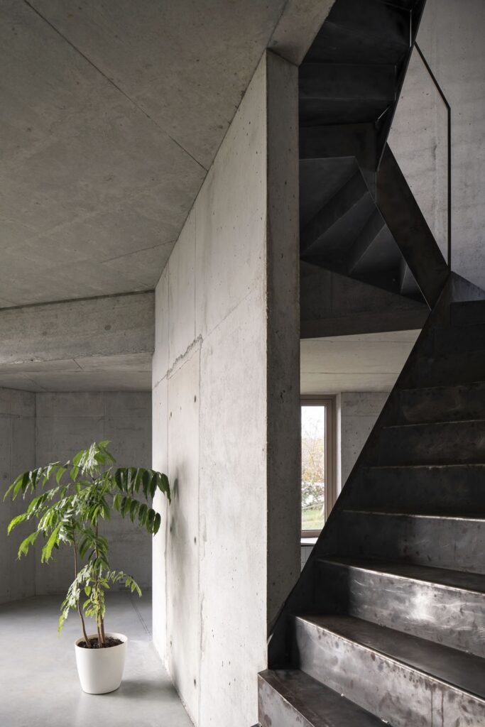 Konstrukci stavby tvoří vnitřní socha – betonové stěny a desky –, kterou obklopuje obálka. „Dům jsme koncipovali jako vertikální jeskyni světla. Jeho interiéry se liší velikostí, výškou a denním osvětlením. Propojili jsme je tak, aby vznikl kontinuální plynoucí prostor,“ uvádí architekt Miroslav