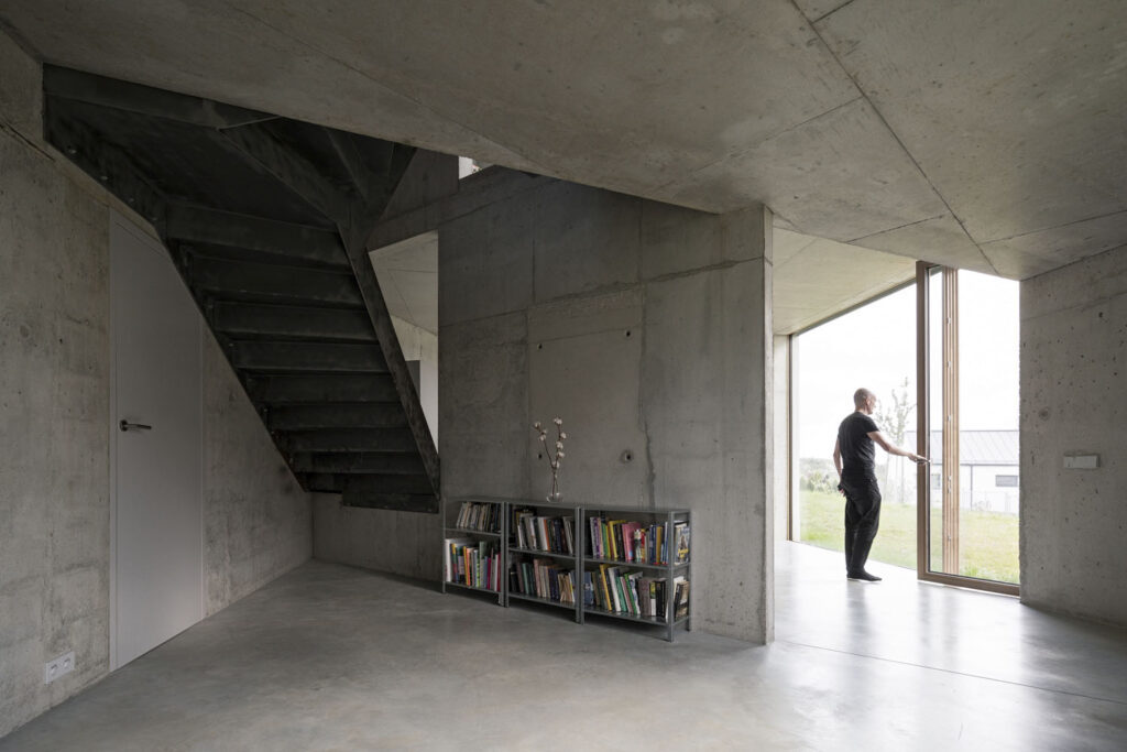 Byl to proces a do jisté míry také experiment, finální podobu interiéru jsme ladili souběžně se stavbou. Hrubá stavba nám hodně napověděla, jak by měly interiéry nakonec vypadat. Naštěstí se nám tak i díky trpělivosti klientů podařilo ještě více akcentovat prostorově materiálové řešení hrubé stavby ve finální podobě interiéru.