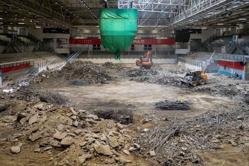 Rekonstrukce objektu byla naplánována na období mezi dvěma sezónami, nicméně první uchazeč s nejnižší cenovou nabídkou prací z procesu veřejné zakázky odstoupil a došlo k časovému posunu. Zhotovitelem stavby je (společnost druhá v pořadí nabídek) sdružení HOMOLA – DRŽÍK, jemuž bylo pak staveniště předáno v druhé půlce června 2023. Dokončení prací předpokládáme v listopadu tohoto roku. Nezbytné bylo odčerpání čpavku z původní soustavy, které přineslo rovněž časový posun v harmonogramu prací. Aktuální stav prací definuje Jaroslav Kovář, jednatel městské společnosti SAREZA, která zimní stadion provozuje, následujícím: „V současnosti jsou dokončeny bourací práce v hlavní hale, byly demontovány mantinely i staré sedačky, zahájeny byly stavební úpravy strojovny chlazení a kompletně byl odčerpán čpavek. Následně bude zahájena instalace nových technologií chlazení.“