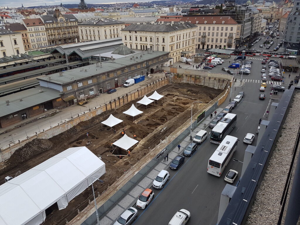 Díky tomu, že se projekt nachází v hradebním pásu Staré Prahy, vydal průzkum významné množství nálezů – cca 400 přepravek. Kvůli odkrytí hradeb musely být provedeny úpravy přípojek inženýrských sítí tak, aby samotná stavba mohla začít v roce 2021. Při pracích na další etapě – výstavbě hotelu The Cloud One, na kterém archeologický záchranný výzkum probíhal téměř po celý rok 2021, byla část hradeb překlenuta vlastní stavbou a jejich část je vidět za výkladcem hotelu z jeho severní strany. Průzkum v této oblasti pak částečně odkryl základy gotické Horské brány a mnoho dalších objektů a situací včetně reliktů barokního bastionu č. XXIII sv. Mikuláše.