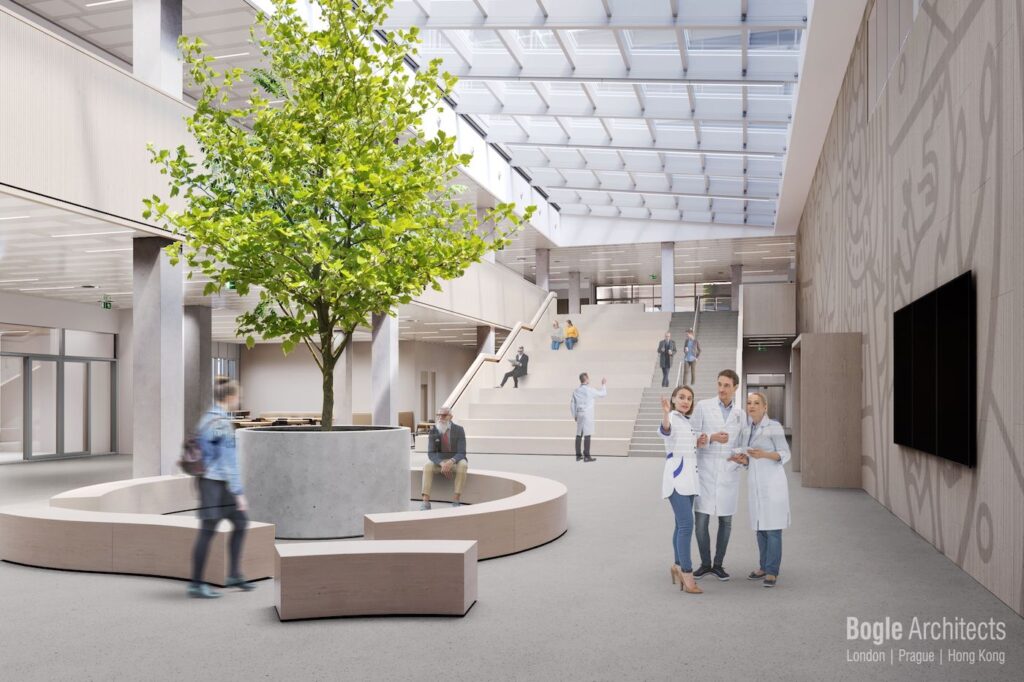 Design centra tak, jak jej navrhli Bogle Architects, je zároveň v souladu s představami a přáními, jež vyjádřili studenti a zaměstnanci českých vysokých škol v letos dříve realizovaném výzkumu se 140 respondenty1. Ti se v prvé řadě shodli na tom, že parametry budov tuzemských univerzit neodpovídají nárokům 21. století. Zároveň vyjádřili názor, že doboví architekti, kteří za stávající podobou jejich škol stojí, nepracovali dle zadání beroucího ohledy na potřeby budoucích studentů a vyučujících. Podle většiny respondentů má přitom právě fyzické prostředí významný vliv na produktivitu.
