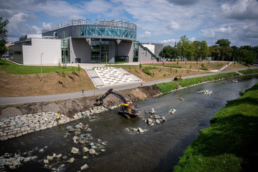 Lidé, procházející podél Ostravice ve zmíněném místě, mohou pozorovat, jak stavební stroje usazují kameny, které břeh zpevní. Následně velké kameny doplní i kameny menších rozměrů a vytvoří tak břeh dle návrhu architektů. Vzniknout by měl přívětivější prostor pro cyklisty i chodce, propojující univerzitní kampus a odpočinkovou zónu kolem řeky. Připravována je také proměna Černé louky a nevzhledná lokalita se postupně stává vyhledávanější ve chvílích odpočinku. Dlouhodobějším cílem je vznik pohodlného cyklistického a pěšího spojení z centra města okolo mostu Miloše Sýkory a kampusu až do Dolních Vítkovic.