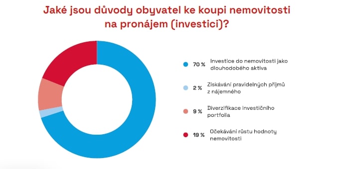 Hlavním motivem ke koupi nemovitosti na pronájem je pořízení dlouhodobého aktiva, kde investoři vidí příležitost pro stabilní a rostoucí hodnotu vložených peněz. Jen malý počet investorů vnímá pravidelné příjmy z nájemného jako primární důvod pro koupi nemovitosti. Měsíční renta z nájmu nebývá hlavní motivací.