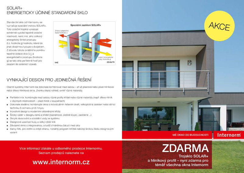 Od 17. září do 30. listopadu 2012 nabízí společnost Internorm trojsklo SOLAR+ a hliníkové opláštění zdarma pro skoro všechny okenní systémy.