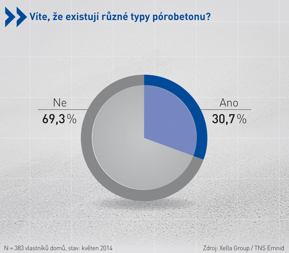 Pórobeton se v České republice používá při stavbě domů již po celá desetiletí. Je proto překvapivé, že 69 procent majitelů domů neví, že existují dva typy tohoto stavebního materiálu – bílý a šedý – a že jsou mezi nimi zásadní rozdíly. Takový je závěr z reprezentativního průzkumu realizovaného agenturou Emnid pro výrobce stavebních materiálů Xella mezi majiteli domů.