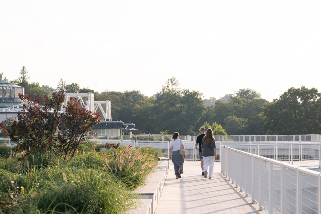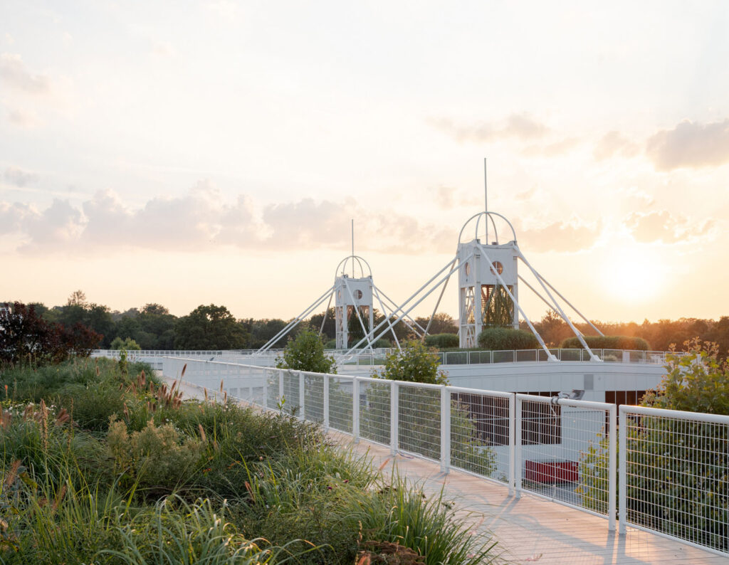 Jedním z klíčových prvků revitalizace je úprava střechy, která získala zcela nový charakter. Původně nevyužité a zanedbané plně betónové plochy byly přeměněny na aktivní zelené střechy přístupné veřejnosti. Tato koncepce zelených střech reaguje na aktuální potřebu udržitelných městských zásahů, což snižuje efekt tepelného ostrova a zlepšuje odtokovou bilanci srážkových vod. Současně vytváříme prostor s různorodou funkcí, umožňující celoroční využití. Mimo oddychu a relaxace v zeleni chceme umožnit jednoduché stravovaní i sportovní a společenské aktivity. Na střeše se nyní nachází bufet, běžecká dráha a herní prvky, které proměňují tento prostor v místo s multifunkčním využitím.
